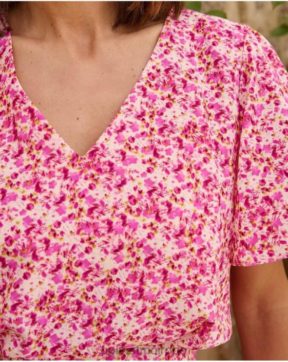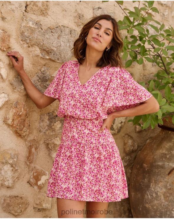 robe courte à imprimé floral fuchsia. encolure avant en pointe. coupe en caoutchouc à la taille qui adapte la robe au corps tout en laissant la partie supérieure plus légère et bouffante. manches courtes et larges style chauve-souris. jupe courte, droite et fluide. comprend une doublure intérieure. une robe au style romantique parfaite à combiner avec des chaussures plates ou des espadrilles.