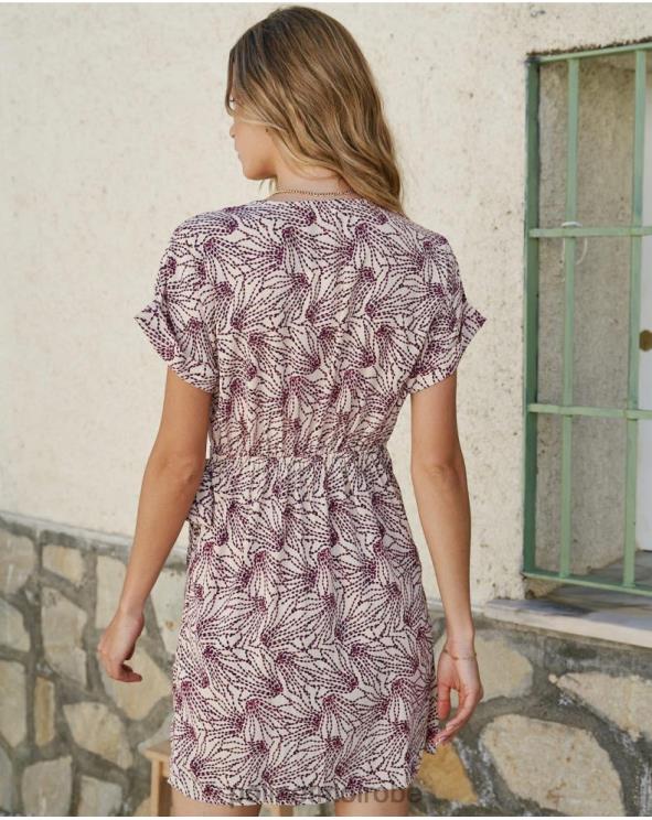 Robe courte croisée avec imprimé sur fond brut. encolure en pointe.